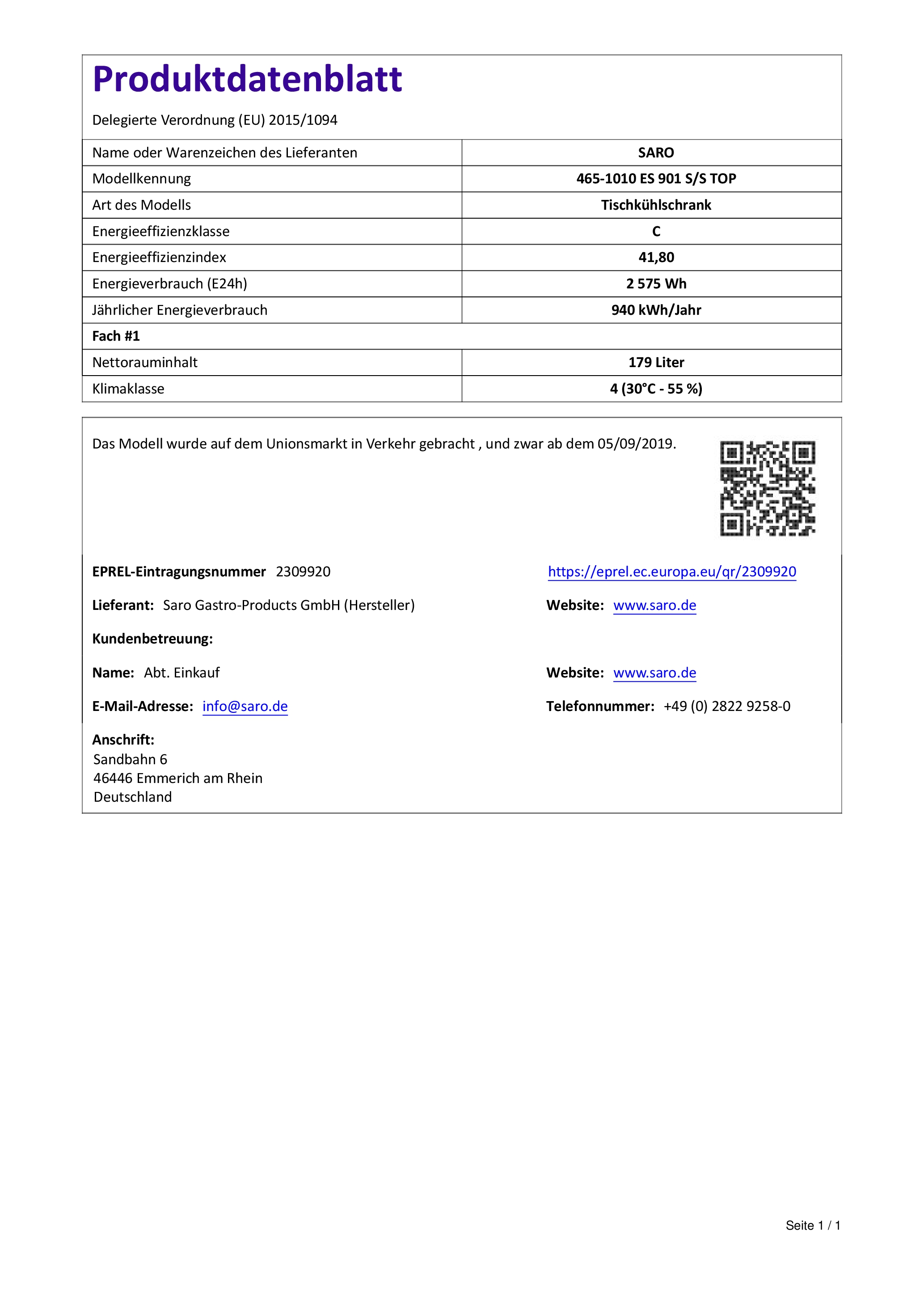 SARO Kühltisch, 2 Türen, Modell ES 901 S/S TOP