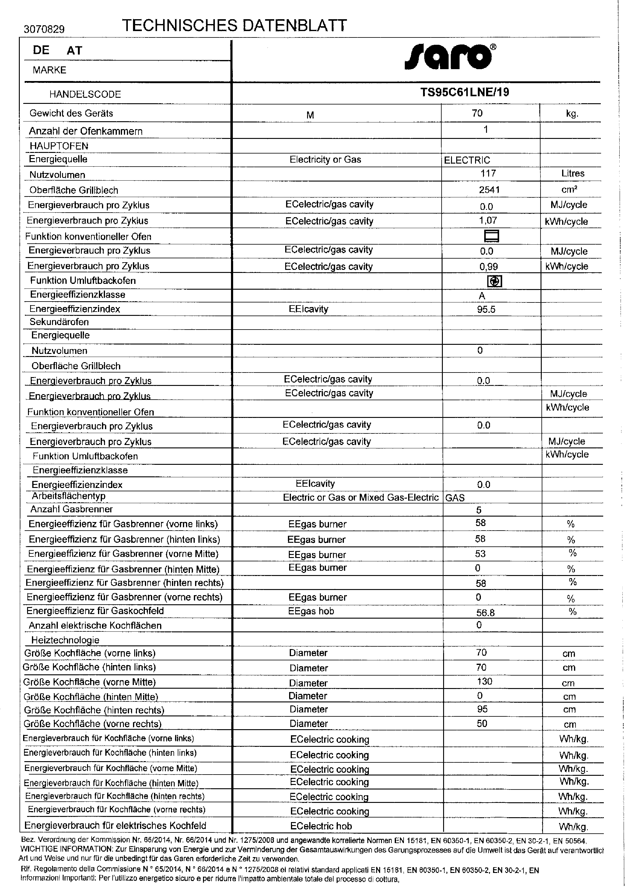SARO Multifunktionsherd Gas/Elektr., TS95C61LNE schwarz