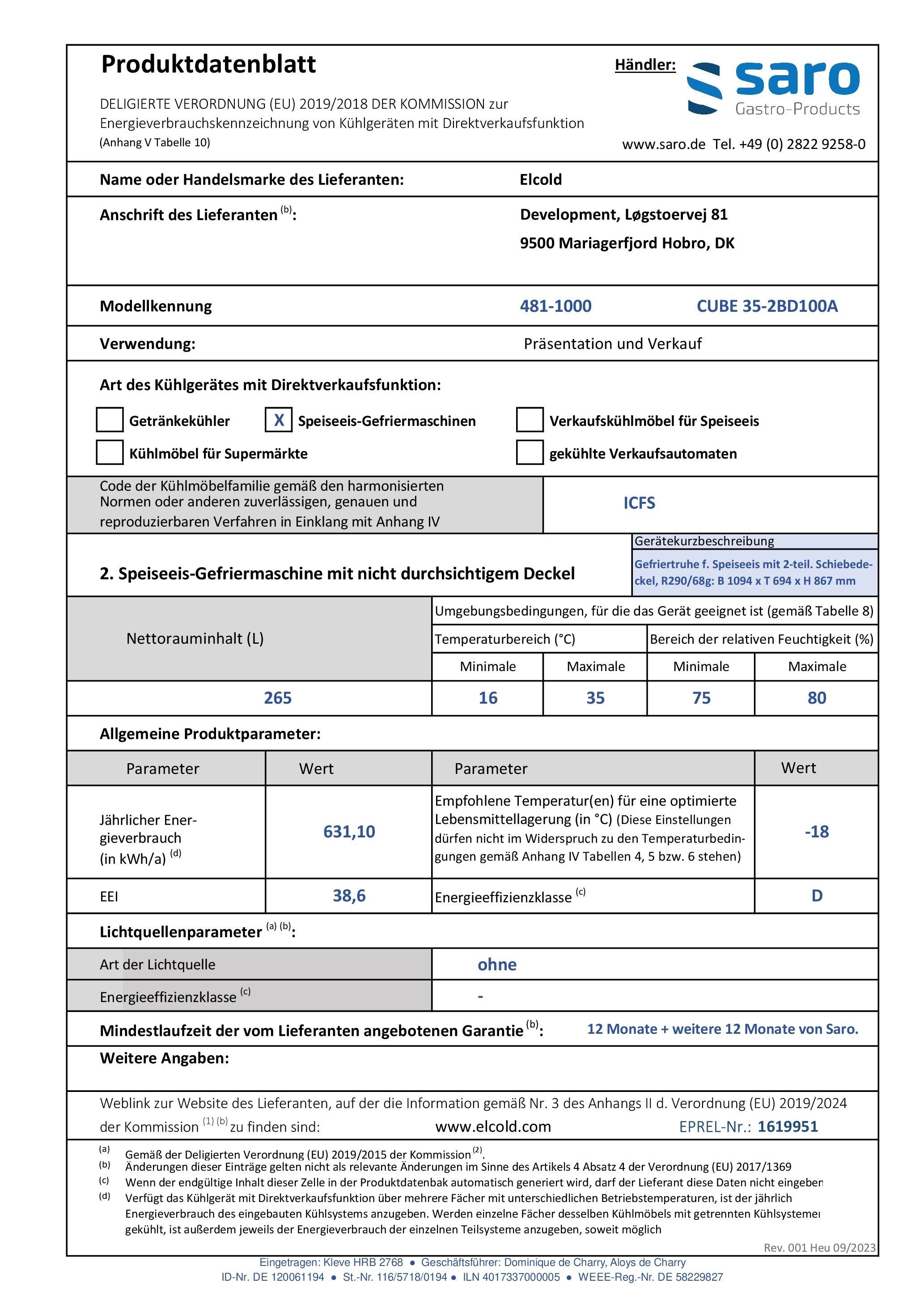 - Energieeffizienzklasse: D (Spektrum A bis G)
